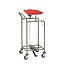 1 - rings wasverzamelaar. Standaard is deze wasverzamelaar uitgerust met een handig voetpedaal, dit zorgt voor een hygiënische werkwijze. Tevens beschikt deze wasverzamelaar over een duwbeugel, dit komt het ergonomisch werken ten goede. U heeft de keus uit welke kleur deksel u wenst. Vul aan de rechter zijde uw gewenste kleur in. U heeft de keus uit wit, groen, blauw, rood, geel, bruin, grijs en zwart. Deze wasverzamelaar is tevens uitgerust met een handig rvs haakje aan de zijkant (zie afbeelding). Tevens is de wasverzamelaar verrijdbaar door middel van 4 grijze rubberen zwenkwieltjes. De wieltjes hebben een diameter van 75 mm. Van deze wieltjes zijn er twee voorzien met een rem en draadweerschijven. De rvs ringen zijn voorzien van een grijs rubberen bevestigingsring, hier kunt u eenvoudig uw waszak aan bevestigingen.
