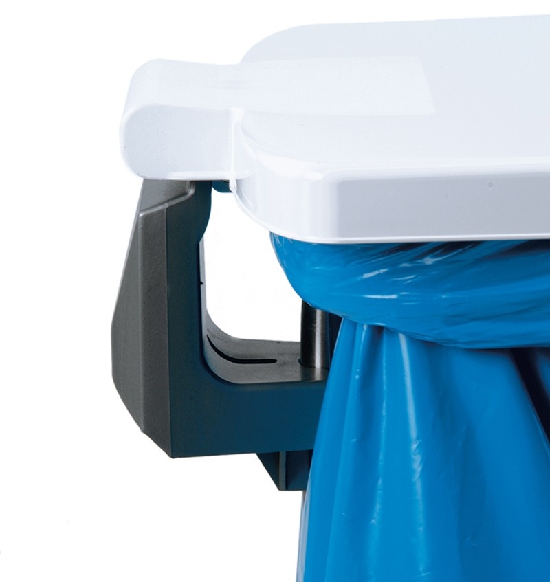 Twee rings wasverzamelaar. Standaard is deze wasverzamelaar uitgerust met een handig voetpedaal, dit zorgt voor een hygiënische werkwijze. Tevens beschikt deze wasverzamelaar over een duwbeugel, dit komt het ergonomisch werken ten goede. U heeft de keus uit welke kleur deksel u wenst. Vul aan de rechter zijde uw gewenste kleur in. U heeft de keus uit wit, groen, blauw, rood, geel, bruin, grijs en zwart, combineren is ook mogelijk. Deze wasverzamelaar is tevens uitgerust met een handig rvs haakje aan de zijkant (zie afbeelding). Tevens is de wasverzamelaar verrijdbaar door middel van 4 grijze rubberen zwenkwieltjes. De wieltjes hebben een diameter van 75 mm. Van deze wieltjes zijn er twee voorzien met een rem en draadweerschijven. De rvs ringen zijn voorzien van een grijs rubberen bevestigingsring, hier kunt u eenvoudig uw waszak aan bevestigingen.