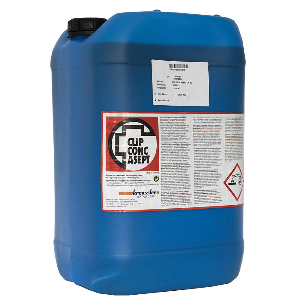 Geconcentreerde reinigingsbooster voor hygiënisch reinigen, afwerken en antistatische behandeling van textielreiniging. Gebruik in perchloorethyleen- en koolwaterstofoplosmiddelen