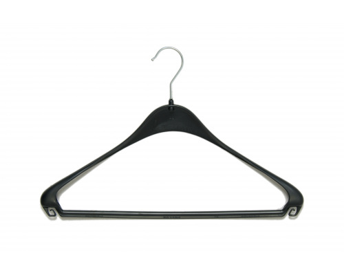 De F hanger is een stevige multifunctionele hanger geschikt voor kostuums en jassen. Economisch in gebruik en ruimtebesparend door de vaste broeklat voor broeken en pantalons.