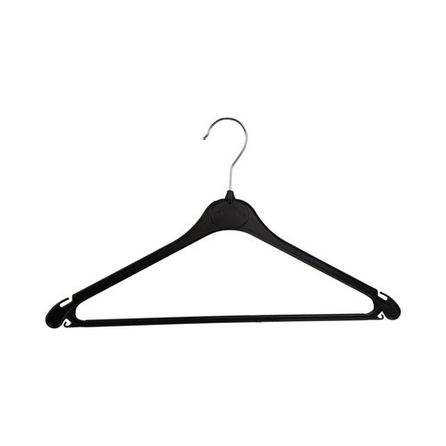 Deze zwarte Mainetti kledinghangers zijn gemaakt van kunststof en zijn multifunctioneel. De rubberen stang dient als anti-slip en zorgt ervoor dat alles hangt wat eraan hangt op zijn plek blijft. Ook heeft deze kledinghanger dubbele inkepingen, waaraan u bijvoorbeeld jurkjes aan zou kunnen ophangen. De kledinghangers zijn verpakt in een doos á 275 stuks.