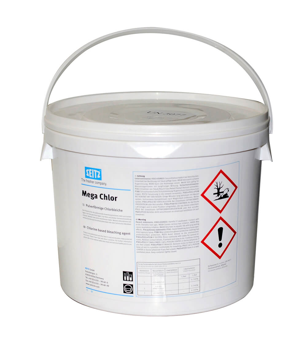 Seitz Mega Chlor is een chloorbleekmiddel geschikt voor het bleken van sterk vervuild textiel van katoen en gemengde stoffen en kan in alle wasmachines worden gebruikt.