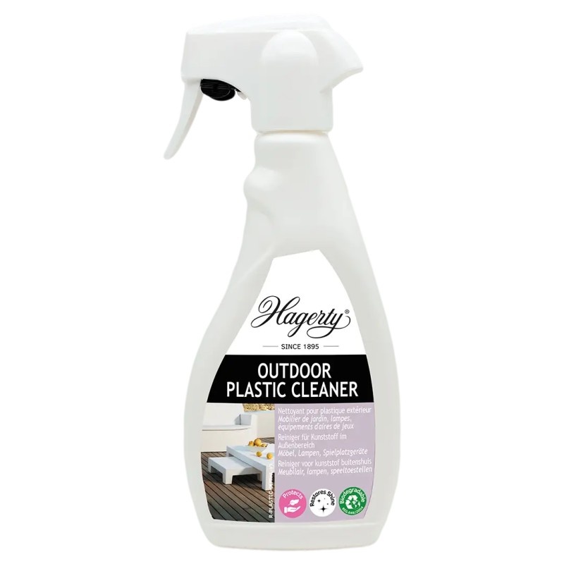 Verwijder eenvoudig vlekken en resten van je kunststof meubels met de Hagerty Outdoor Plastic Cleaner. De kant-en-klare formule elimineert sporen van kalkaanslag en respecteert oppervlakken zonder de kleuren te veranderen. Onderhoud je meubels en accessoires met gemak met deze reiniger.