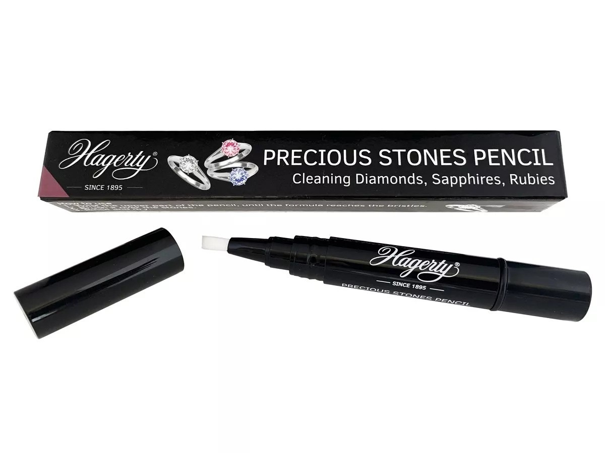 Heeft u een edelsteen in uw sierraad of juweel? En kunt u maar moeilijk achter de diamant, saffier of robijn schoonmaken? Speciaal daarvoor ontwikkelde Hagerty de Precious Stones Pencil®. In feite is het een zeer nauwkeurig en zacht borsteltje dat uw edelsteen en daarmee uw kostbare juweel weer doet glanzen.