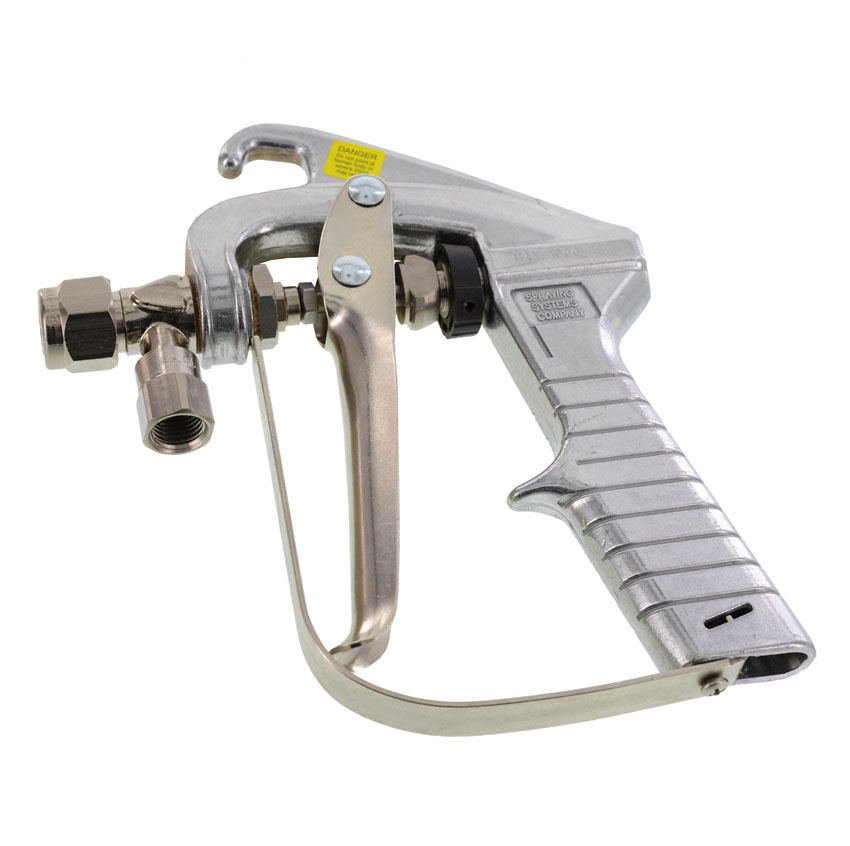 Speciaal spuitpistool, model AA27H, zonder sproeier voor het spuiten van borstelmiddelen uit drukvaten. Omschrijving: - Roestvrijstalen pistool - 1/4" aansluiting - Druk: 69 bar - met trekkervergrendeling - Geïsoleerde pistoolgreep voor temperaturen tot 93 °C (200 °F) - inclusief adapter B7599-1/4-NP - Filter 7630-100. Vlakke of ronde sproeiers zijn apart verkrijgbaar.
