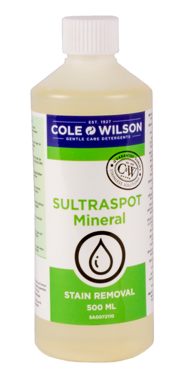 De reeks professionele detacheermiddelen van Cole & Wilson; Sultraspot is gemaakt voor het verwijderen van vlekken uit kledingstukken.